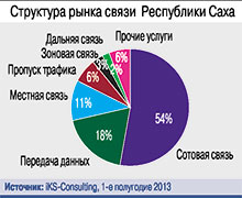 По объему выручки от услуг связи Якутия занимает 28-е место среди субъектов РФ и третье среди регионов ДФО. В первом полугодии 2013 г. доходы якутских операторов росли быстрее, чем в среднем по России, увеличившись по сравнению с аналогичным показателем прошлого года на 7%, до 5,5 млрд руб.