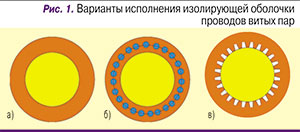 Также в значительной степени исчерпаны резервы улучшения качества изоляции. Современные полимерные материалы, используемые для формирования изолирующих покрытий медных проводников, отличаются предельно малыми потерями. Кроме того, относительная диэлектрическая проницаемость доведена до величины около 1,5. Это достигается в том числе за счет применения пустотелых материалов, получаемых за счет вспенивания или структурирования (рис. 1). Ее дальнейшее существенное снижение проблематично из-за сложностей, связанных с обеспечением механической стабильности самого изоляционного покрытия.