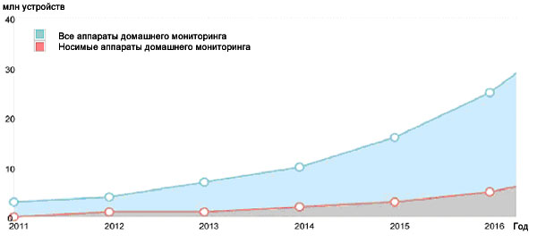 Как любой продукт, носимые устройства вызывают особую симпатию, если приносят ощутимую пользу с первых секунд. Вполне естественно, что появляется все больше приборов, помогающих пожилым людям сохранять независимость, а членам семьи и сиделкам — следить за тем, все ли в порядке. По данным исследовательской компании ABI Research, с 2011 по 2017 гг. доля аппаратов домашнего мониторинга на рынке носимых медицинских устройств с беспроводной передачей данных увеличится почти вдвое, с 12% до 22%.