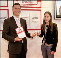В целом на 1000 кв. м выставочной площади в первом зале павильона 8 разместились если не все, то многие серьезные игроки отечественного рынка электронных и мобильных платежей. Стенд компании ОСМП, в преддверии выставки e-Finance Russia, обнародовавшей жизнеутверждающие финансовые результаты 1-го квартала 2007 г. (оборот компании за этот период превысил 20 млрд руб., или $800 млн), расположился на самом заметном месте. Здесь демонстрировался комплекс решений для успешного бизнеса по приему платежей: POS-терминалы, линейка автоматов самообслуживания, в которой выделялась новая модель ОСМП – 2 М+ со встроенным сканером-штрих и кардридером, программные продукты Windows-терминал, веб-терминал, позволяющие использовать для проведения транзакций персональный компьютер, подключенный к сети, а также Java-терминал – приложение для мобильного телефона с возможностями сохранения настроек пользователям и списка проведенных платежей, а также печати чеков на принтере.