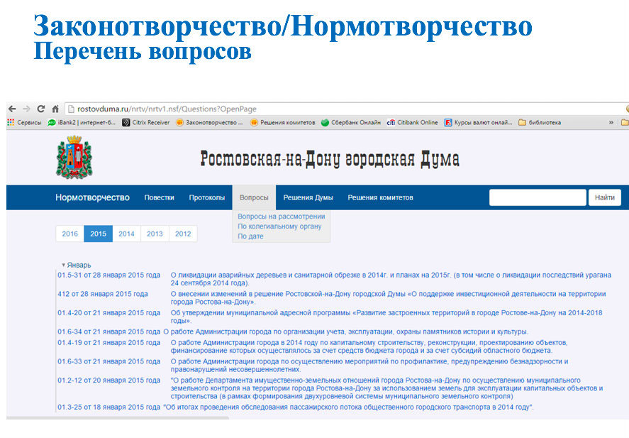 Автоматическое наполнение карточек, протоколов, паспортов и проектов необходимыми документами из СЭД – одно из преимуществ этого решения. Точно так же автоматизирован перевод стадий рассмотрения, рассылка документов и уведомлений, формирование печатных версий документов. При этом ряд моментов нуждается в доработке. Так, в системе пока нет отдельного систематизированного хранилища законов и постановлений.