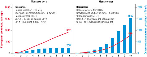 Рис. 1. Соотношение стоимость/емкость для больших и малых сот |