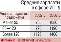 Необходимо добавить, что в последние два года развитие всего ИТ-бизнеса, и особенно сервисных компаний SMB, в значительной степени было затруднено ростом заработной платы персонала (таблица). Такая тенденция – результат растущей потребности всех сфер экономики в ИТ-специалистах, а также интенсивного развития центров разработки ПО зарубежных и крупных российских компаний. Сейчас компании, действующие по сервисной модели, испытывают серьезные трудности. Они либо теряют персонал, либо превращаются в подразделения более крупных компаний.
