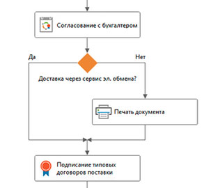 Финальный штрих – Иван скорректировал правила/маршруты согласования документов, которые настраивал ранее, с учетом возможности доставлять контрагенту электронный документ. Теперь если в рамках согласования по регламенту контрагенту отправляется электронный документ через сервис обмена, то этап печати пропускается.