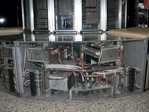 | Запущенный в эксплуатацию в 1976 г. суперкомпьютер Cray‑1 имел невиданную тогда производительность – 133 Мфлопс. С тепловыделением такой системы не справлялась ни одна из стандартных систем охлаждения, что заставило разработчиков обратить внимание на погружные состемы. В качестве теплоносителя был выбран жидкий фреон. |
