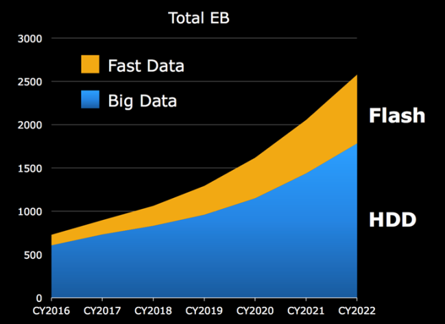 К тому же, по его словам, вся flash-индустрия сейчас способна закрыть 7-9% рынка в гигабайтах хранения, и в ближайшее время этот диспаритет в ближайшее время никуда не денется. Все это дает Western Digital основание прогнозировать, что к 2020-му году 90% данных в облачных ЦОДах будут храниться на жестких дисках.