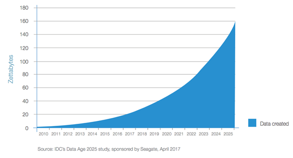 С каждым годом объем обрабатываемых и хранимых данных увеличивается. Так, IDC прогнозирует, что общее количество создаваемых в мире данных с 2018 по 2025 гг. вырастет с примерно 33 до 160 зеттабайт (рис. 1). Поэтому необходимо также постоянно наращивать производительность ИТ-систем и емкость хранилищ. Таким требованиям отвечают две технологии: твердотельные накопители (SSD) с высокой скоростью доступа к данным и емкие жесткие диски (HDD). Если для одних приложений лучше подойдет SSD, то для других традиционные жесткие диски остаются предпочтительным вариантом. И, похоже, такое положение дел сохранится в обозримом будущем.