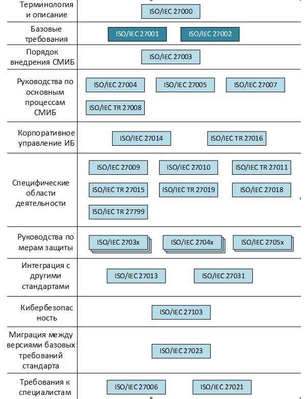 Базовые стандарты ISO/IEC 27001 и ISO/IEC 27002 со временем были дополнены следующими документами: