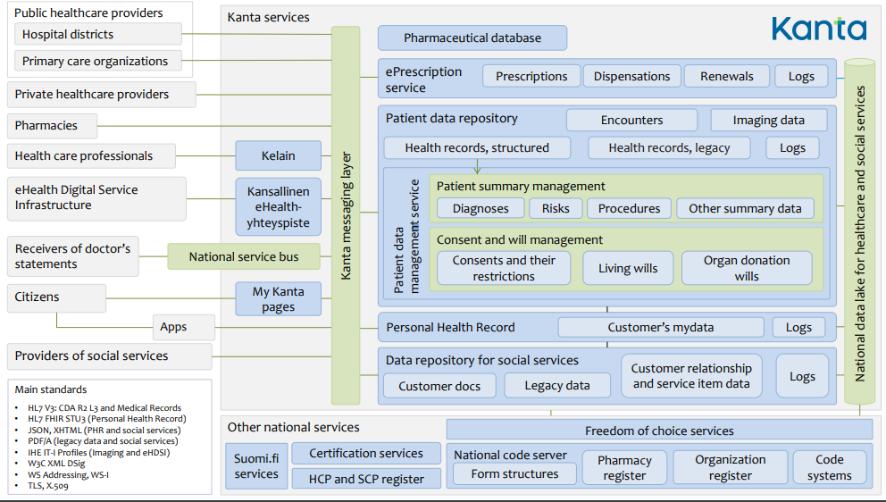 Государственная информационная система здравоохранения Финляндии, аналог российской ЕГИСЗ, называется KANTA. Электронные сервисы KANTA для пациентов, врачей, органов управления здравоохранением и социальным обеспечением поэтапно внедряются с 2010 года.