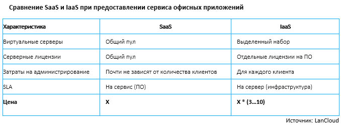 модели SaaS составила 60 тыс. руб., тогда как через модель IaaS –