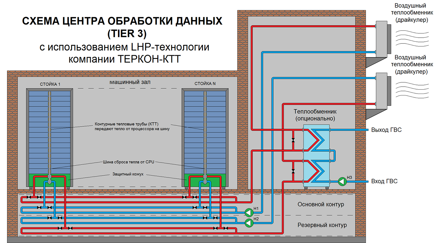 Комплексная система охлаждения для ЦОДов на базе технологии LHP была разработана «Теркон-КТТ» совместно со специалистами Alfa Laval (в 2019 году подразделение Alfa Laval по воздушным теплообменникам было приобретено компанией LU-VE). Проект был поддержан одним из ведущих российских коммерческих ЦОДов DataPro, который предоставил площадку для размещения такой системы.