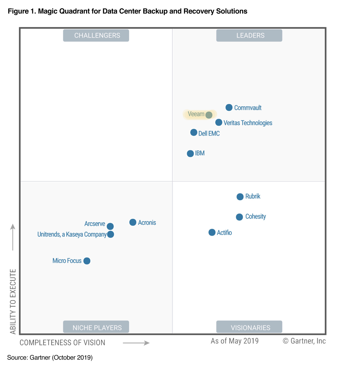 В 2017 году Veeam была включена в список 100 ведущих частных облачных компаний мира – Cloud 100 Forbes. Пришел успех, компания стала мировым лидером в области резервного копирования виртуальных машин и мониторинга виртуальных сред, что нашло отражение в квадранте Gartner решений по резервному копированию и восстановлению для дата-центров (Gartner Magic Quadrant for Data Center Backup and Recovery Solutions 2019).