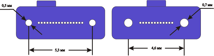 Рис. 4. Схемы размещения световодов, выравнивающих штифтов и ключевых кодирующих выступов в однорядных 12- и 16-волоконных наконечниках соединителей МТР