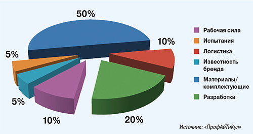 Вспомните физику: для того чтобы получить работу, нужно затратить энергию. Для того чтобы изготовить более дешевое изделие, нужно на чем-то выгадать. Как производители компонентов систем охлаждения мы можем с уверенностью сказать: в стоимости климатического оборудования доля рабочей силы, задействованной непосредственно в производстве (в подсчет не входит гонорар работников отделов научных разработок и продаж), очень мала – не более 10% (рис. 2). Еще порядка 5% идут от известности бренда. Основную же часть стоимости изделия составляют вложенный в него интеллектуальный труд, методы испытаний и используемые при его создании материалы/комплектующие. Всего лишь урезав испытания на заводе, например, тестируя оборудование не по европейским нормам (EN), а по нормам ассоциации Eurovent, можно удешевить его на 5%. Доля материалов/комплектующих самая большая и составляет более 50% стоимости оборудования. Производители низкокачественных комплектующих появляются и исчезают каждые два-три года. Представляете, сколько можно выгадать на материалах/комплектующих? При этом затрат на научные разработки у дешевых и очень дешевых брендов почти нет. Производители этого сегмента не утруждают себя внедрением современных технологий, скопировать старое и утвердившееся на рынке гораздо дешевле.