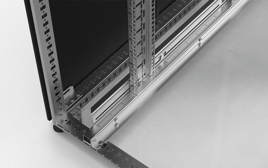 Простая установка оборудования достигается благодаря легкочитаемой юнитовой (U) разметке на профилях. В серверных шкафах шириной 800 мм можно изменить монтажную ширину с 19 на 21 дюйм без использования дополнительных элементов. Для удобства выполнения монтажных работ и установки оборудования двери имеют угол открытия до 270 градусов с возможностью изменения направления открытия.