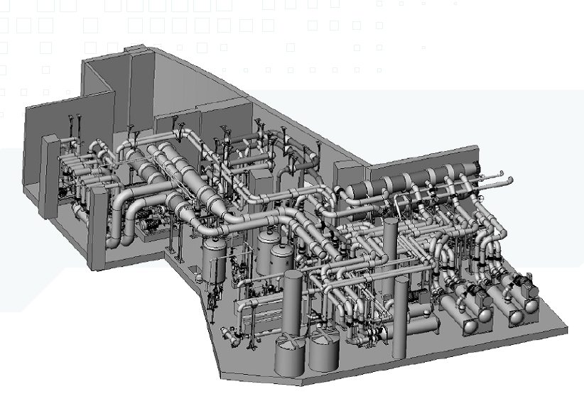 Рис.4. 3D-модель и подготовка трубной обвязки на заводе «ОМП-Инжиниринг»