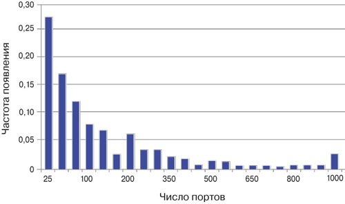 Рис. 2. Частота реализации информационных кабельных систем с разным числом портов