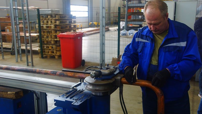 Собравшиеся на мероприятие партнеры, клиенты и представители прессы посмотрели на работу сборочного конвейера. Все аккуратно, с использованием технологических карт, разве что не хватает фирменной заводской униформы — рабочие одеты по-разному. Посетили основные участки производства: сварочный, малярный, металлообработки с лазерным станком для резки технологических отверстий в металле. Заглянули в камеру температурных испытаний, где тепловые пушки обеспечивали тепловую нагрузку на тестируемый чиллер.
