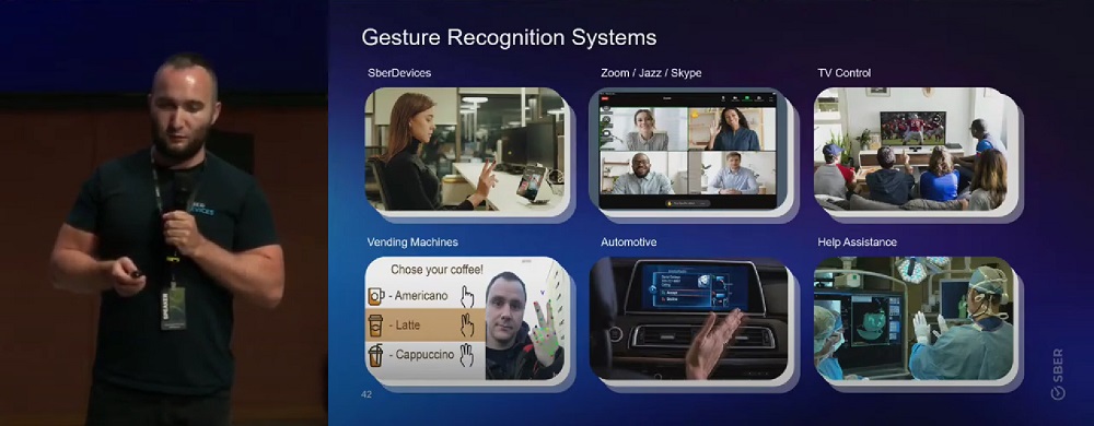 Компьютер способен распознавать не только картинку, но и жесты. C помощью жестов можно управлять умной колонкой или видеоконференцией. По словам руководителя группы CV компании SberDevices Александра Капитанова, это самый простой вариант – человек находится перед камерой и распознать его действия достаточно легко. Если человек сидит перед телевизором, т.е. расстояние до камеры достигает 5 м, то помимо статических жестов стоит использовать динамические. Например, при вращении пальцем увеличивать громкость. Динамическими жестами можно управлять и мультимедийной системой автомобиля.
