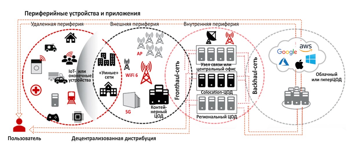 Разные типы периферийных вычислений требуют разных сред развертывания, разных локаций, например, на объектах связи, на объектах/инфраструктуре заказчиков. Разные приложения и цифровые сервисы предъявляют разные требования к задержкам и вычислительным ресурсам, что, в свою очередь, диктует потребность в сети дата-центров разных типов.