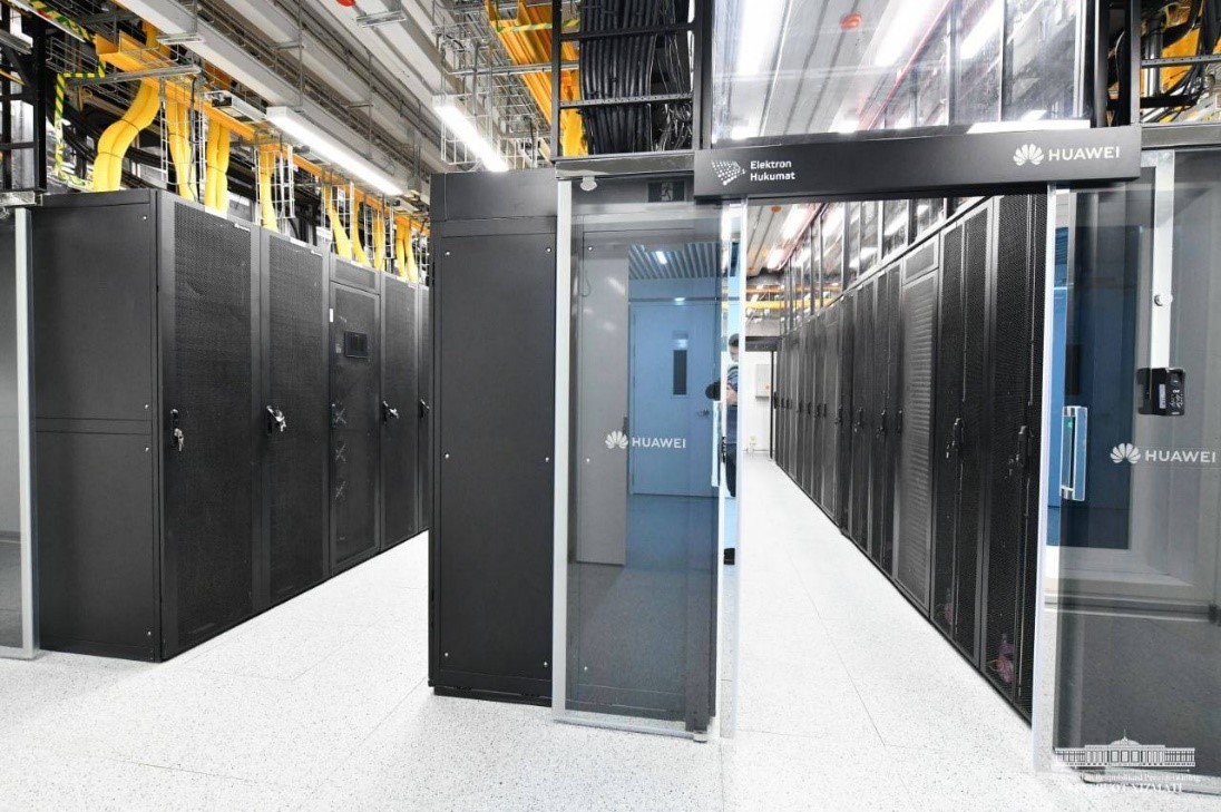 Недавно в Зангиатинском районе Ташкентской области в рамках стратегии «Цифровой Узбекистан – 2030» при участии компании Huawei был построен единый центр хранения и обработки данных «Электронное правительство». ЦОД рассчитан на размещение 300 ИТ-стоек, общая электрическая мощность объекта – 5 МВт. В нем установлены 580 серверов и система хранения данных емкостью 20 Пбайт. ЦОД полностью оснащен всем необходимым оборудованием для обеспечения бесперебойного (ИБП) и гарантированного (дизель-генераторы) электропитания, охлаждения ИТ-нагрузки, противопожарными системами и пр. Проект ЦОДа имеет сертификат Tier III, выданный организацией Uptime Institute.