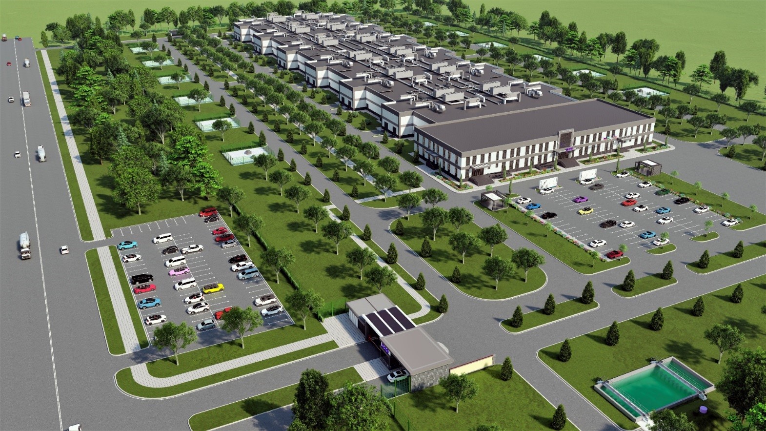 Проект рассчитан на две очереди, каждая из которых предполагает возведение комплекса на 960 стоек. В обоих комплексах будет по шесть машзалов, вмещающих 160 стоек. Инфраструктура проекта рассчитана на то, что средняя мощность потребления одной стойки составит 6 кВт, но в проект закладывается и возможность установки стоек с более высокой мощностью.