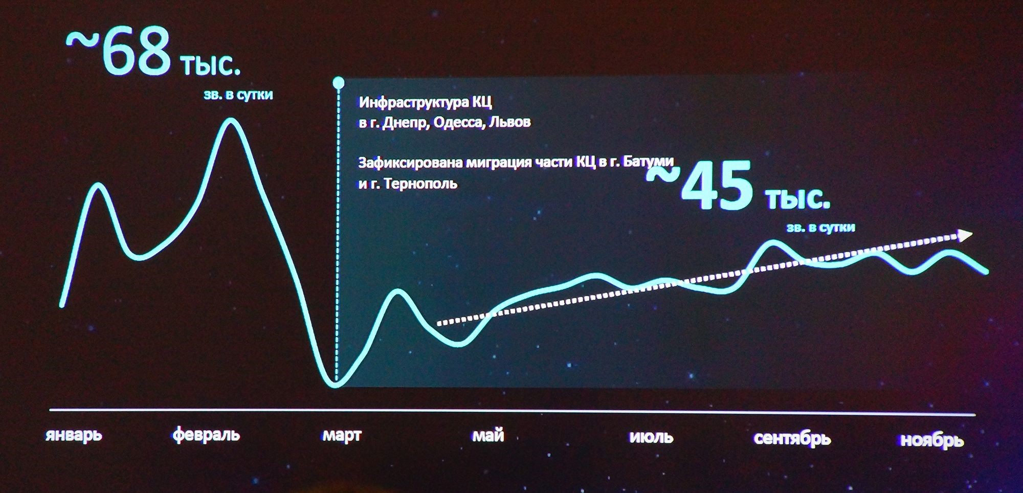 Основные источники мошеннических звонков — колл-центры Украины в Харькове, Днепре, Львове и Одессе. С началом СВО число мошеннических звонков резко упало, но вскоре снова стало расти, приближаясь к январскому уровню. Очередное снижение отмечено в последний месяц после начала ударов России по украинской энергетической инфраструктуре.