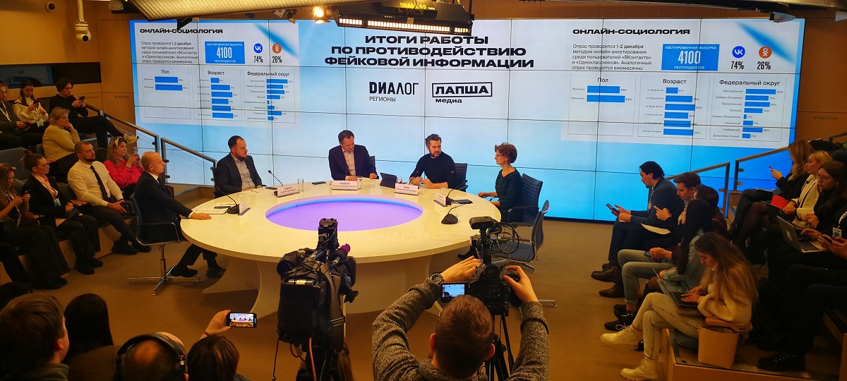 Для выявления фейков АНО «Диалог Регионы» развернула фактчекинговый сервис «Лапша Медиа», включающий сайт (https://lapsha.media) с функцией проверки информации, чат-бот в «Вконтакте», медиамониторинг и базу фейков. С момента запуска платформы поступило более 85 тыс. запросов на проверку публикаций и сообщений.