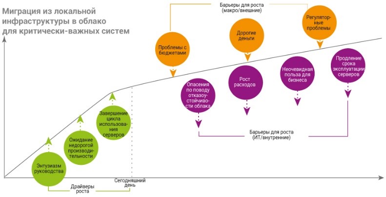 Рис. 2. Движущие силы и барьеры для миграции в облако (инфраструктурные облачные сервисы)