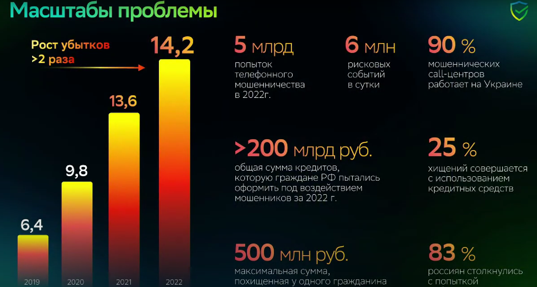Меняется характер телефонных преступлений. Если в 2019 г. в основном крали средства со счетов жертвы, то в 2021 г. появилось кредитное мошенничество, когда людей загоняют в кредитные долги и они не только лишаются денег, но и остаются должны банкам. В 2021 г. случалось, что у людей обманом отнимали недвижимость, в 2022 г. число таких преступлений возросло. В этом году людей с помощью социальной инженерии начали посылать совершать поджоги и другие террористические акты.