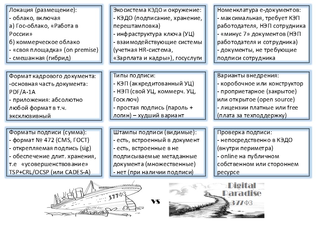 В приказе Минтруда № 578н кроме уже упомянутой отсылки к приказу Минцифры № 472 в неявном виде указывается, что с 01.03.2023 разрешена только открепленная подпись, т.е. «вроде бы» должен быть файл, содержащий только ЭД, и файл, содержащий только ЭП. Это можно считать первой мелью, на которую неожиданно для ответственного за КЭДО лоцмана сел уже находящийся в промышленной эксплуатации КЭДО с использованием прикрепленной ЭП. Для того чтобы сняться с этой «мели», может потребоваться дорогостоящая переработка уже внедренной системы. Регулятор на ходу существенно меняет правила, сужает круг разрешенных технологий, тем самым заставляя гадать: применение каких технологий будет ограничено завтра?