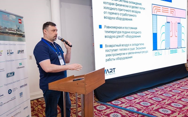 Развенчивая миф о непонимании специфики ЦОДов, делегаты активно интересовались техническими новинками, представленными на выставке. Одна из таких новинок – система изоляции коридоров компании ART Engineering, которая позволяет гибко создавать горячие и холодные коридоры в помещениях разнообразной, даже ломаной формы.