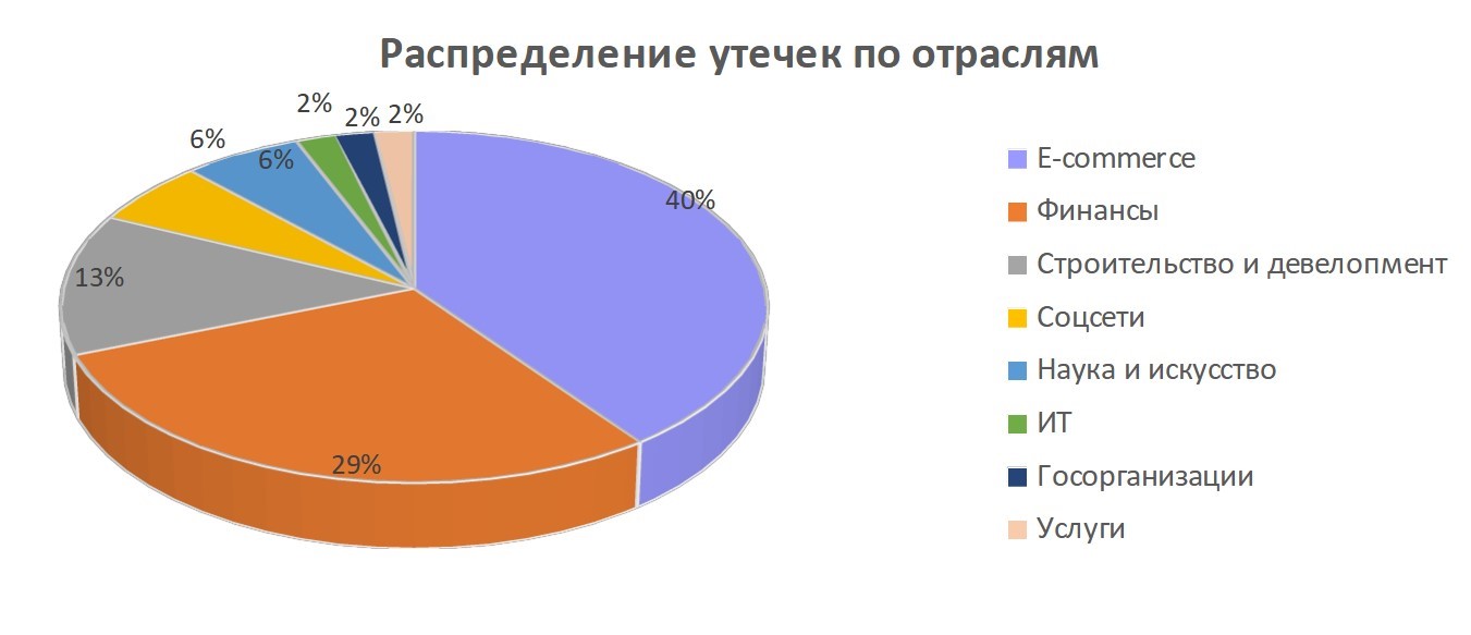76% утечек приходится на базы данных, которые в общей сложности содержат более 300 млн строк, в том числе 61,1 млн адресов электронной почты и 144,3 млн телефонных номеров. Остальные 24% – это массивы документов, украденных с файловых серверов.
