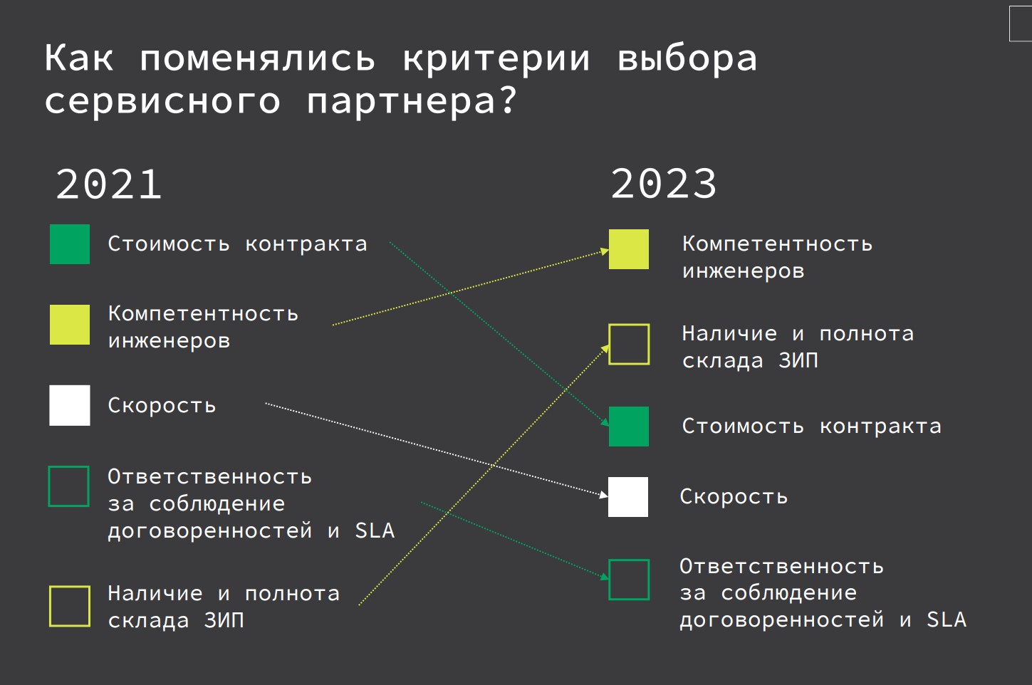Разнообразие новых вендоров увеличило спрос на сервисную поддержку. Главными критериями при выборе сервисного партнера стали наличие экспертизы и возможность быстрой поставки запчастей.