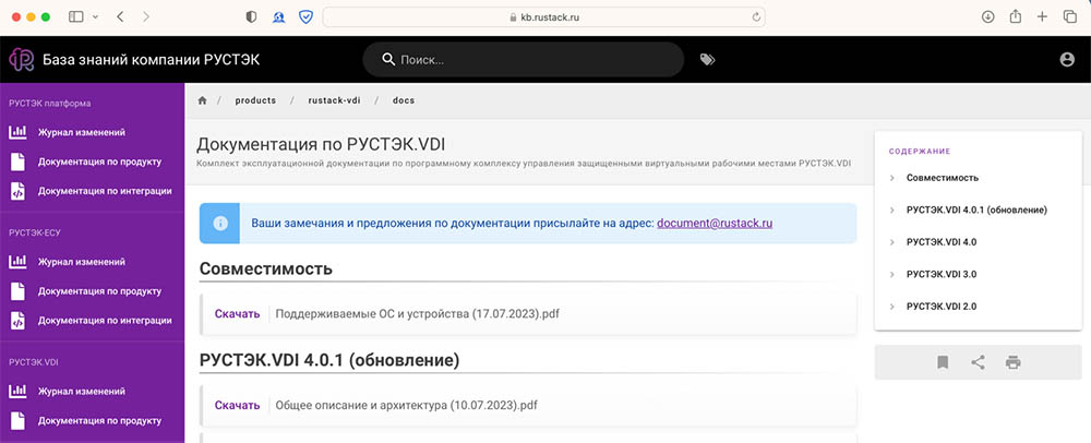 Рис. 15. Портал с документацией по решениям компании «Рустэк»