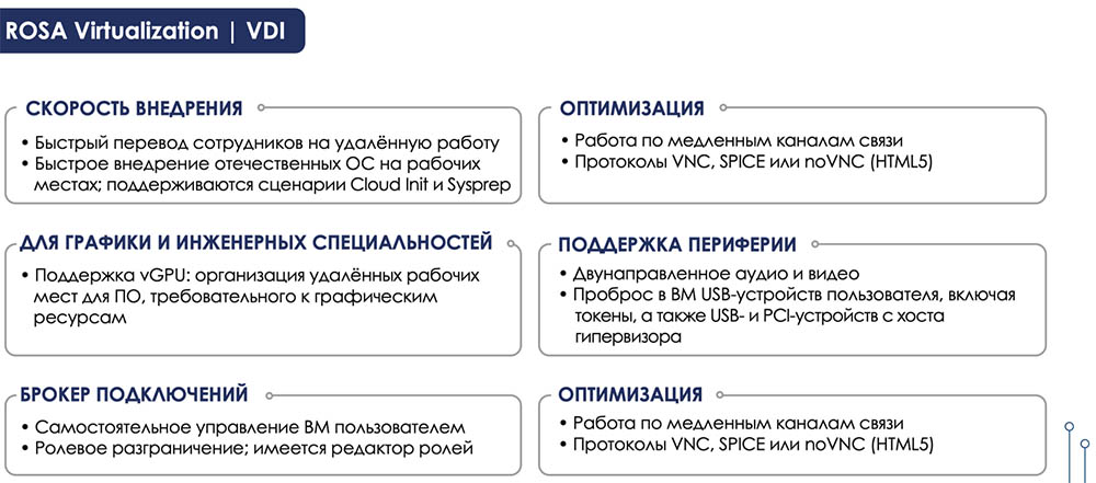 Рис. 3. Описание возможностей платформы ROSA Virtualization