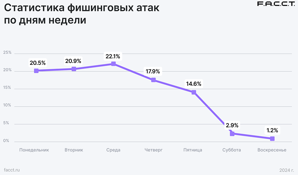 Пик вредоносных рассылок в III квартале вновь вернулся на среду: в этот день рассылались 22% всех фишинговых