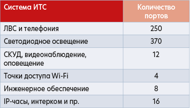 Управляемые через ИТС системы светодиодного освещения, которые отличаются большим количеством портов из-за высокой плотности расположения светильников, за океаном пользуются большой популярностью. Однако они оказывают исчезающе малое влияние на магистральные уровни СКС, поэтому в дальнейшем анализе их можно не принимать во внимание.