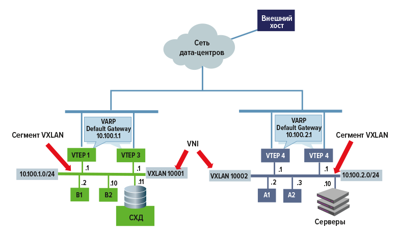 Рис. 4. Объединение локальных сетей с помощью VXLAN
