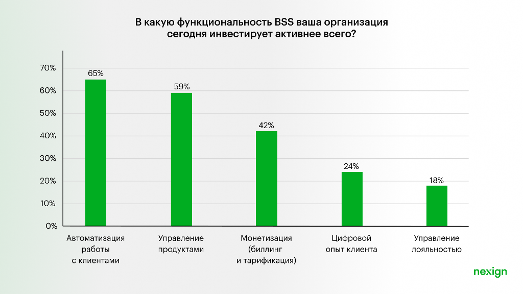 запуску и монетизации 5G. Такие данные опубликованы по результатам исследования рынка BSS, проведенного Nexign и TelecomDaily.