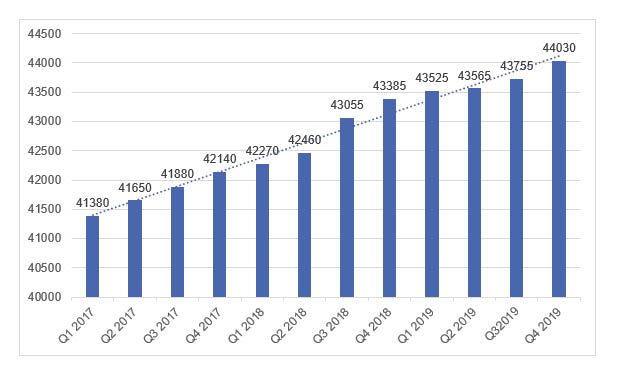 Согласно данным ИАА TelecomDaily, общее количество абонентов платного ТВ в России по итогам 2019 года достигло 44,03 млн, за четвертый квартал операторы подключили чуть более 275 тыс. домохозяйств. Это максимальный показатель за все четыре квартала. Общий прирост за год составил 645 тыс. домохозяйств.