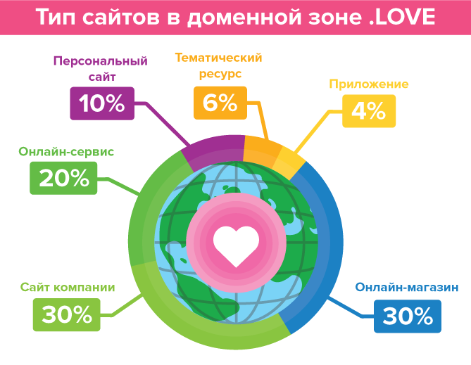 клиентов REG.RU в .LOVE — это онлайн-магазины и страницы компаний, по 30% на
