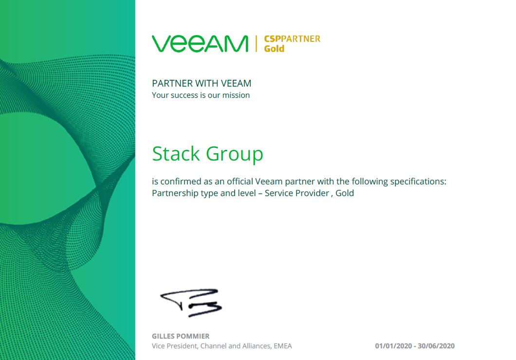 Компания Stack Group получила от компании Veeam, лидера рынка технологий резервного копирования и восстановления данных, новый партнерский статус – Service Provider, Gold.