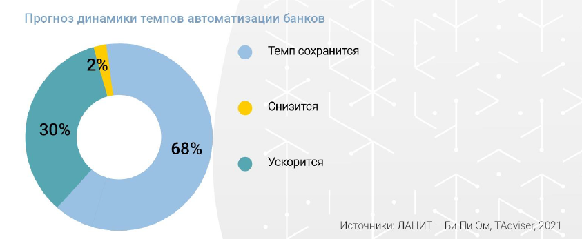 Игорь Потоцкий, генеральный директор ЛАНИТ - Би Пи Эм: “Пандемия стала тригеровм для автоматизации и быстрого создания новых цифровых продуктов. Очевидно, что российские банки считают автоматизацию бизнес-процессов приоритетной задачей. Темпы автоматизации будут только расти, и банки-лидеры рынка действуют в рамках глобального тренда гиперавтоматизации, согласно которому все, что должно быть автоматизировано, будет автоматизировано. Именно автоматизация становится все более значимым фактором, который позволяет компаниям становиться более конкурентоспособными”.