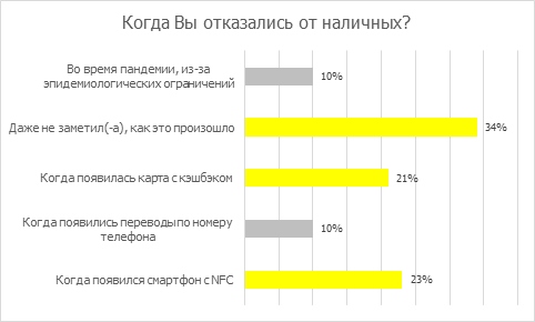 44% россиян отказались от наличных из-за появления смартфона с NFC или карты с кэшбэком, при этом пандемия почти не оказала влияния на эту тенденцию.