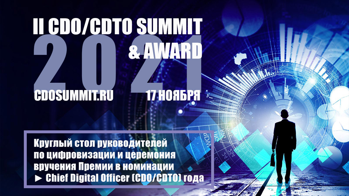 17 ноября в Москве в рамках II Российского Саммита и Премии по цифровой трансформации организаций CDO/CDTO Summit & Award 2021 состоится круглый стол руководителей по цифровизации крупнейших российских компаний и церемония вручения Премии в номинации • Chief Digital Officer (CDO/CDTO) года в различных отраслях. Основная программа Саммита, включающая несколько отраслевых форумов и объявление лауреатов в других номинациях, в связи со сложной эпидемиологической ситуацией перенесена на март 2022 года. Даты проведения будут объявлены дополнительно.
