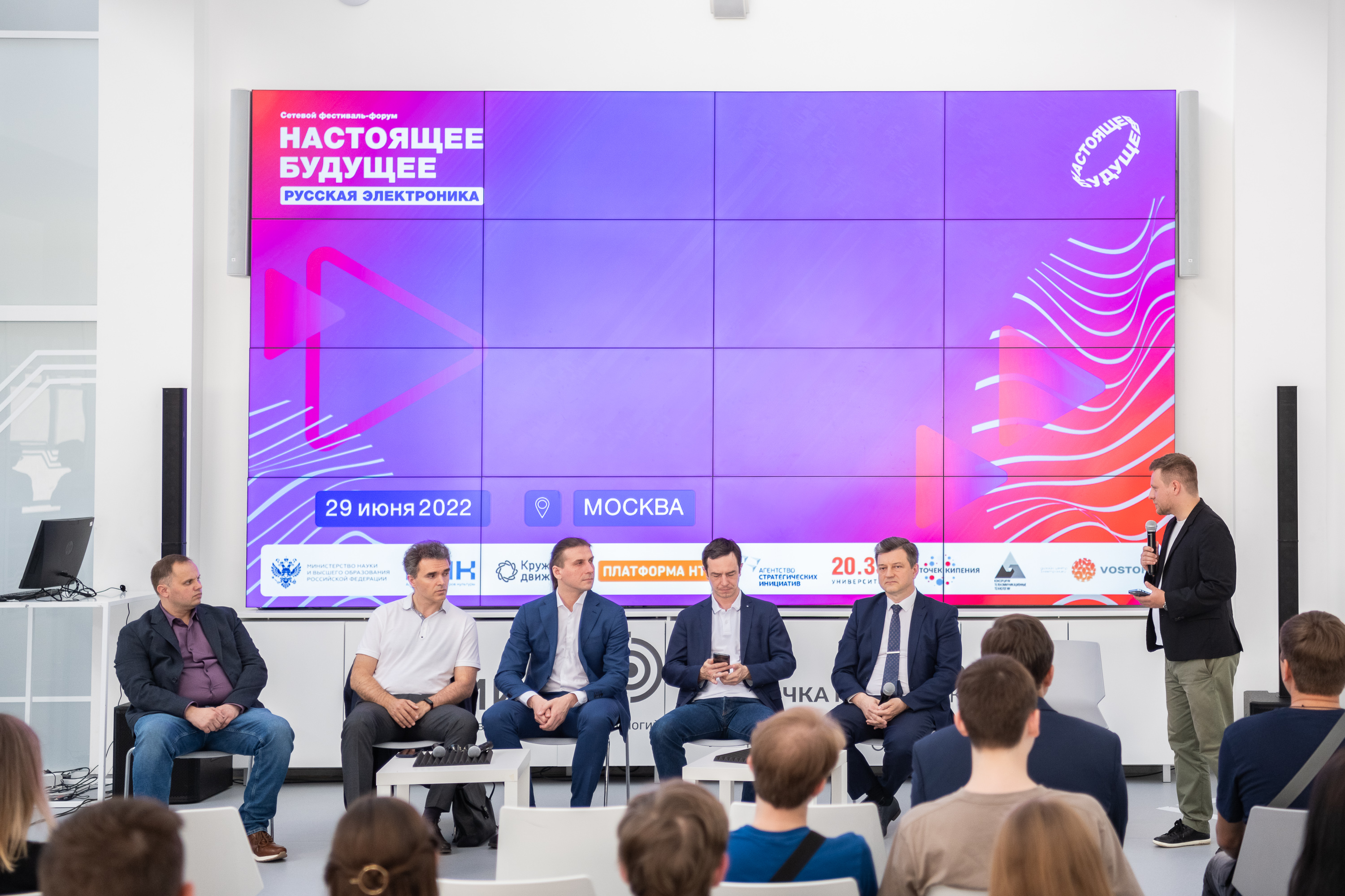29 июня 2022 в Точке кипения–Коммуна НИТУ «МИСиС» состоялся московский форум всероссийского фестиваля-марафона «Настоящее будущее: русская электроника». Цель мероприятия - показать потенциал российских технологий, рассказать о наиболее интересных решениях отечественной электроники, перспективах импортозамещения, профессиях данной отрасли. Организаторы - Министерство науки и высшего образования РФ, Платформа НТИ, Агентство стратегических инициатив, Университет 20.35, НИТУ «МИСиС».