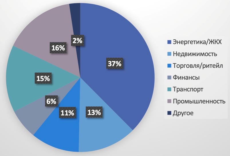 Если разделить корпоративный рынок на сегменты, то на госпроекты (B2G) приходится 13%, остальные 87% SIM-карт M2M/IoT используются бизнесом (В2В). В пятерку отраслей, где M2M-соединения наиболее востребованы, входят энергетика/ЖКХ (37%), промышленность (16%), транспорт (15%), недвижимость (13%), торговля/ритейл (11%).