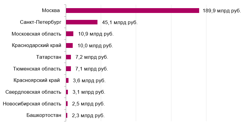Регионы с наибольшими суммарными корпоративными расходами на ПО