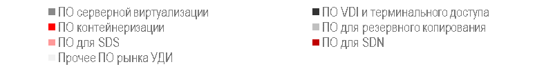 Крупнейший сегмент рынка ПО УДИ – ПО серверной виртуализации, который в структуре рынка в денежном выражении занимает почти 46%.